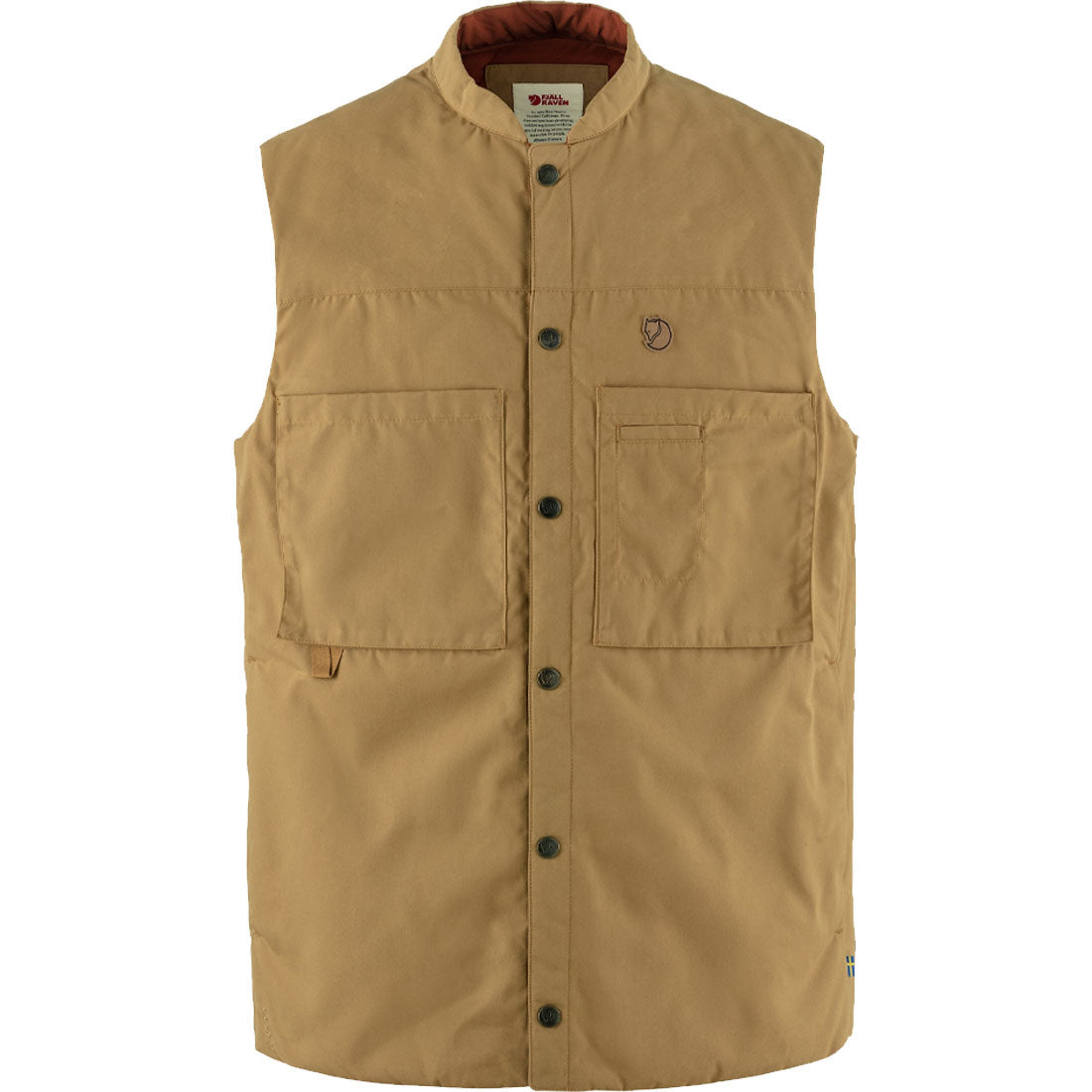 A functional and hardwearing padded vest with practical storage solutions that keep you organised while on the go. Two large, bellows pockets are positioned lower on the chest for ease of use. Includes an interior zippered chest pocket, a multitool pocket and two large hand pockets placed beneath the insulation layer so hands can stay warm in cold conditions. Press button closure at front. The relaxed fit means it can easily be worn over a sweater or a jacket for additional warmth.