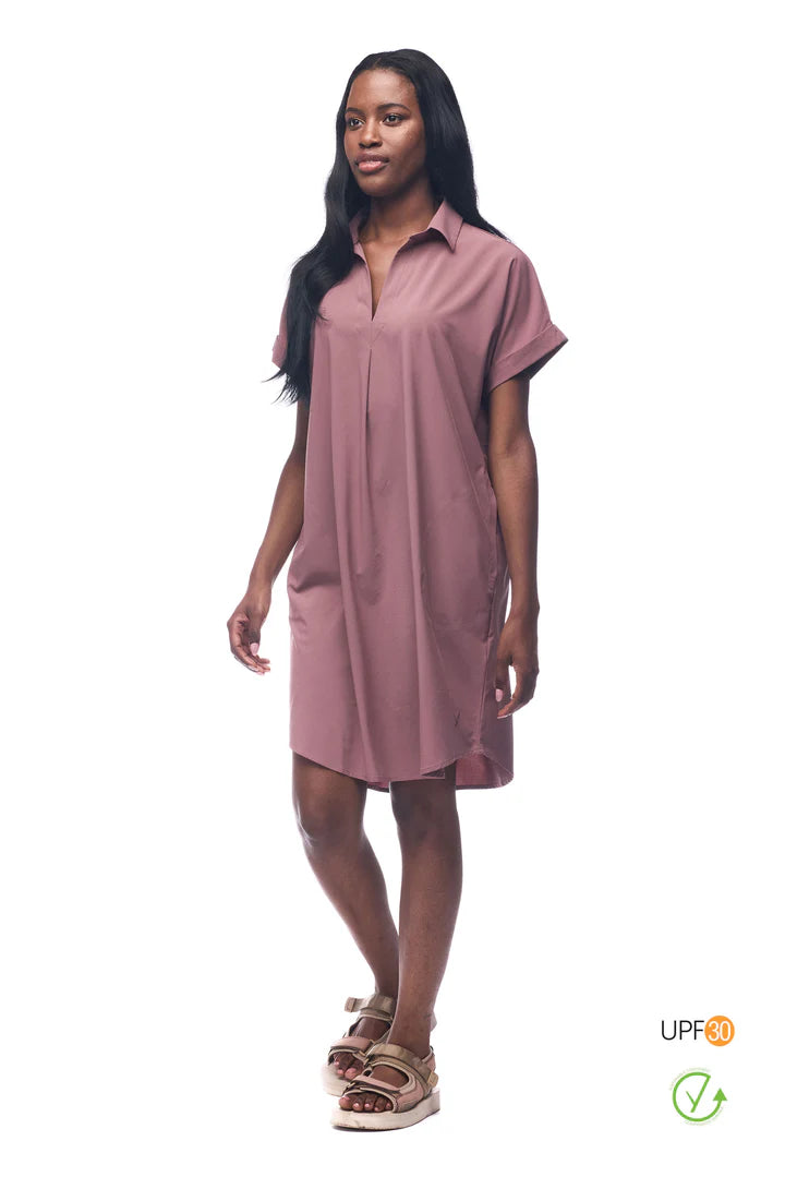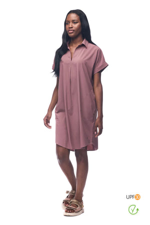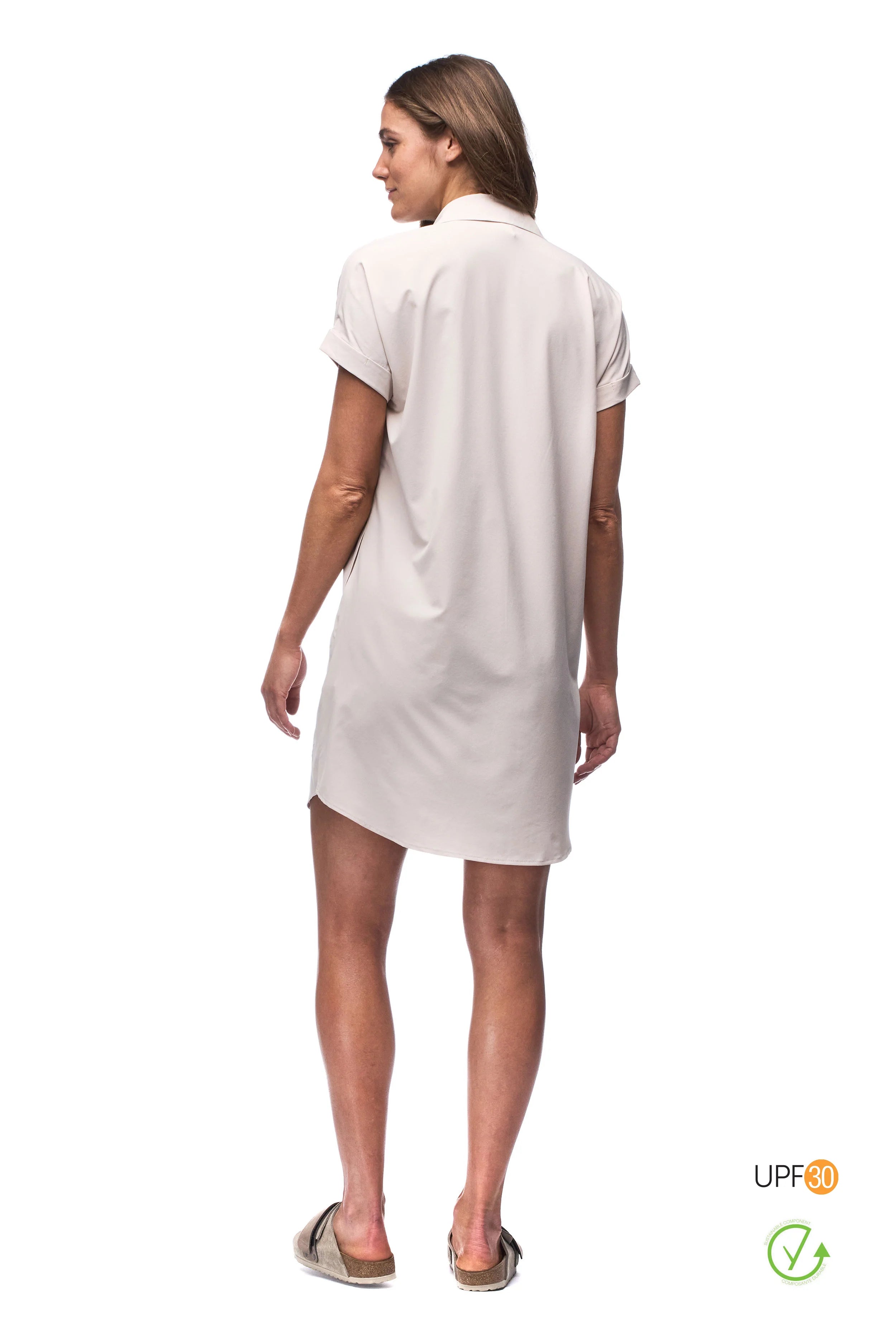 A lightweight short-sleeve shirt dress with a relaxed cut for total comfort anywhere.
