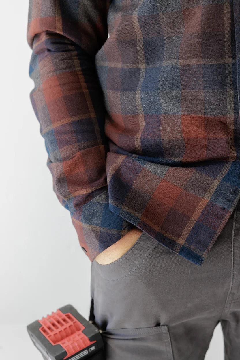 The Buffaroni hits a sweet spot in our flannel line-up. The fabric is a light-weight 3.5oz flannel and a light brushed finish for year round comfort.