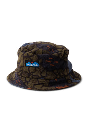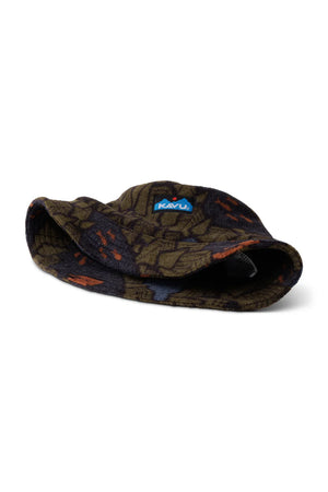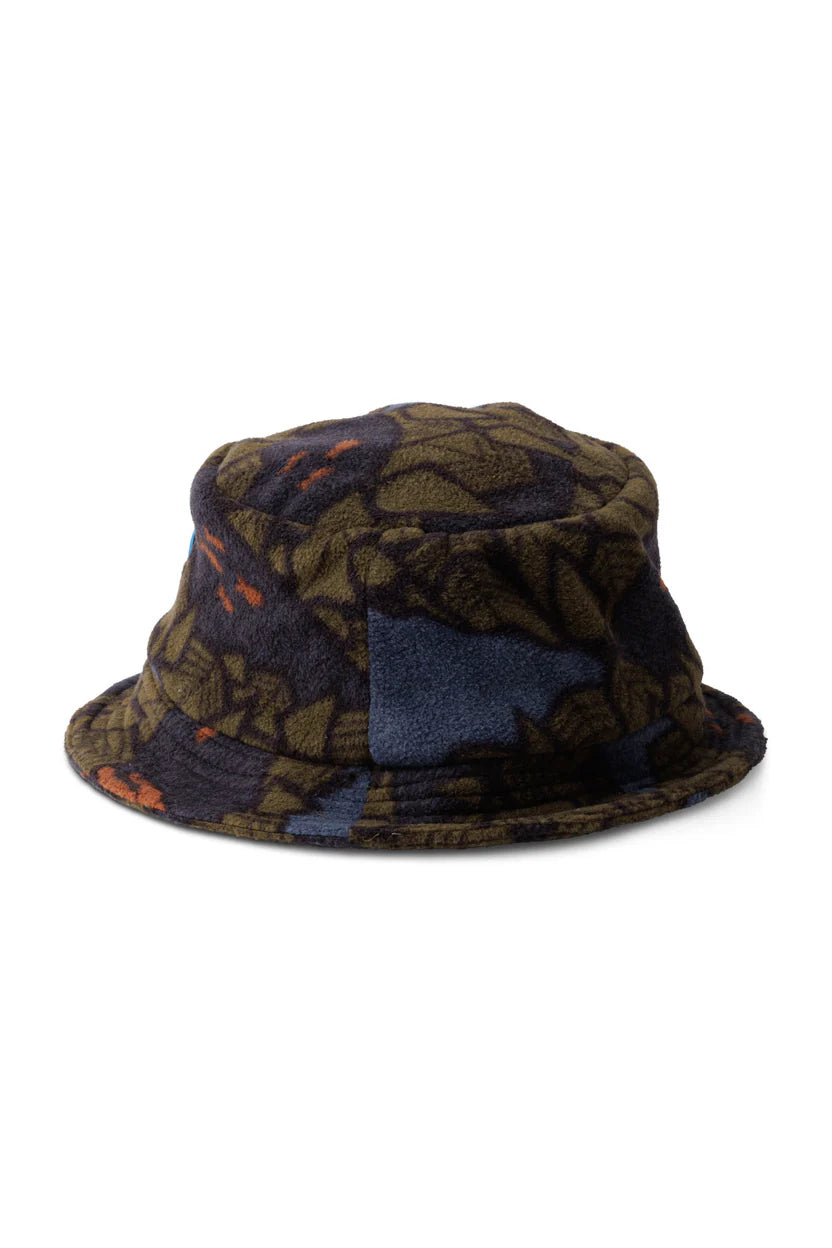 Printed polar fleece boonie, logo label at front, floppy brim, self-fabric liner with interior taping.