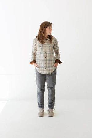 This boyfriend fit long-sleeve button-up is what you're looking for. The elbow patches will give you an extra cushion and just the re-enforcement you need as you lean back in the camp chair sippin' whiskey around the fire.