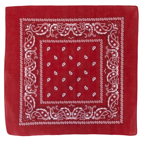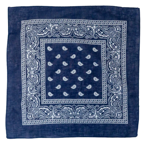 A classic, simple bandana can be used in many useful ways - tie back your hair, a kerchief, make a bandit mask, carry your lunch, or protect yourself from the sun!