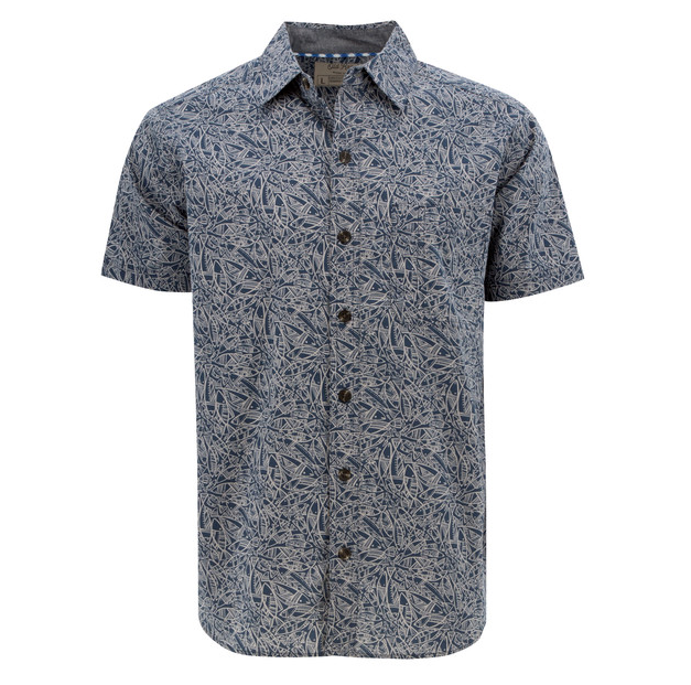 It must be summertime because the fish are jumping! The Marin Shirt is a playful, yet handsome short-sleeve shirt accentuated by an allover print featuring simple line drawings of fish. The style may be modern but the fit of this shirt is a classic, broader cut designed for comfort. Traditional details throughout the shirt add polished finishes, such as a locker loop at the box pleat on the back, a spread collar, and chambray trim inside the neck. One thoughtful detail we love is the pen slot on the chest pocket. Inspired by the outdoors, but built for every day.