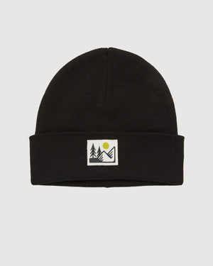 Mountains, trees, and sun all stitched into one. This super-soft beanie brings the best views together on a stretchy rib knit that’s easy to wear all season.