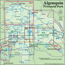 Overlaps with Algonquin 1 - Corridor North, Frost Centre, and soon to be completed Algonquin 5-Central South. Also consider our smaller-size, but larger-scale close-up map guides to popular sections of Algonquin Park - Canoe Lake & Area, Opeongo Lake & Area, Oxtongue River & Ragged Falls, Barron-Achray Area and Bonnechere River. There is also Algonquin 2-Northwest and Algonquin 4-North Central in the series.